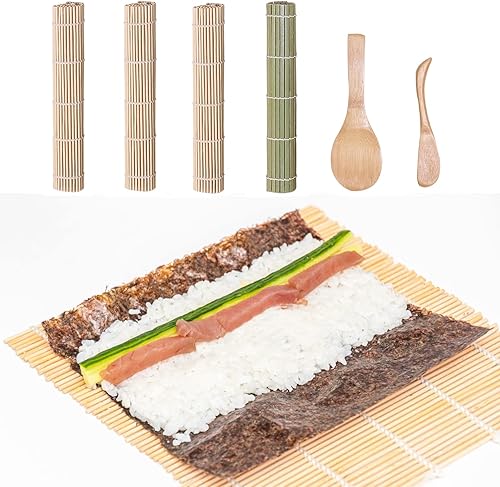 6 Pièces Tapis Sushi, Tapis Sushi Bambou, Tapis Sushi Roulement, Accessoires de Cuisine, pour Débutants et Professionnels Qui Font des Sushis