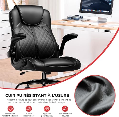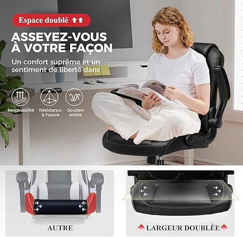 GTPLAYER Chaise Gaming avec Accoudoirs Relevables – Chaise de Jeu Ergonomique à Fonction Bascule – Siège PC Gaming en Mousse Haute Densité Noir
