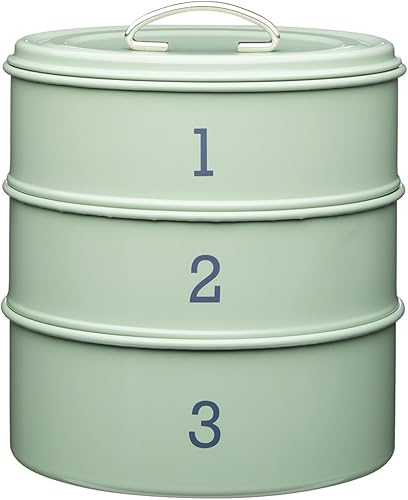 Living Nostalgia KitchenCraft - Boîte à Gâteaux en Métal, 3 Compartiments Étanches, Collection, 22 x 27 cm - Vert Pâle
