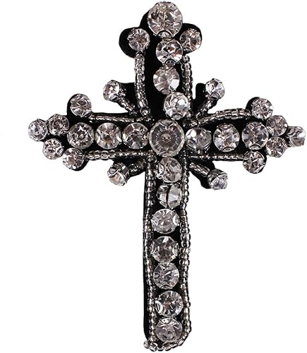 EMDOMO Lot de 5 écussons décoratifs à coudre en forme de croix avec strass