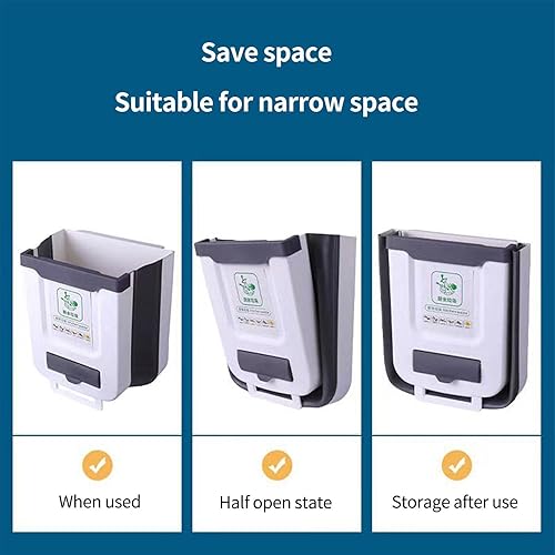 Poubelle Pliante - Poubelle Mince 2,6 gallons - Petite Poubelle 10 l avec conteneur Sac Poubelle pour Porte d'armoire, Voiture, Chambre, Salle Bain, Cuisine, Bureau