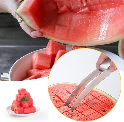 Coupe-pastèque,Outil de Coupe de Pastèque,Cube de Pastèque en Acier Inoxydable Coupe,Couteau de PastèQue Rapide Ustensiles de Cuisine pour Papaye,La Pastèque et Cantaloup