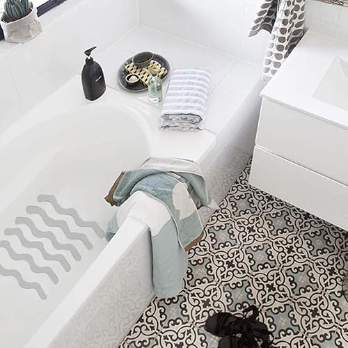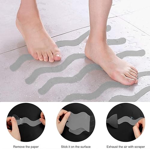 Autocollants Antidérapants, 1 jeu 24 Pièces Autocollants de Douche antidérapants, Auto-adhésif Antidérapant Bandes, avec noir Grattoir, pour escaliers de Douche de Baignoire, gris