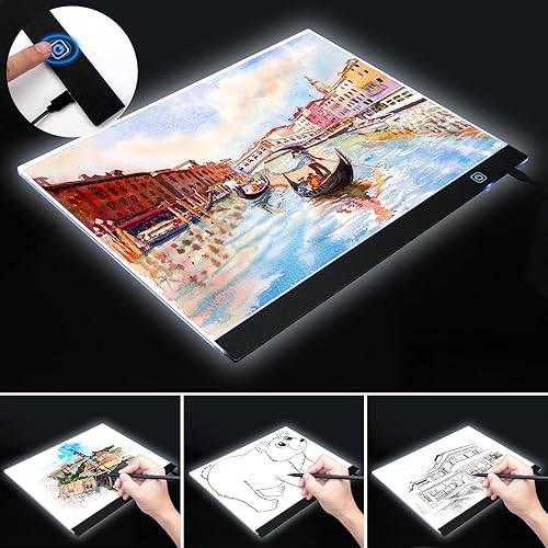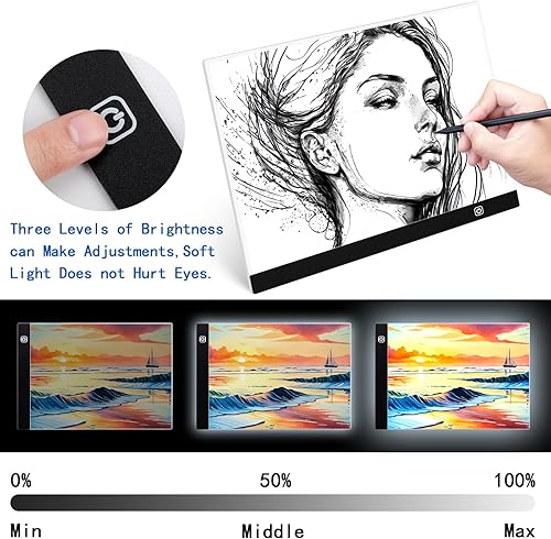 Sofore A3 Tablette Lumineuse,Table Lumineuse Portable de Ultra-Mince,Luminosité Réglable Tablette De Dessin À LED,Tablette Dessin Lumineuse Pad pour Animation,Esquisse,Conception,Dessin