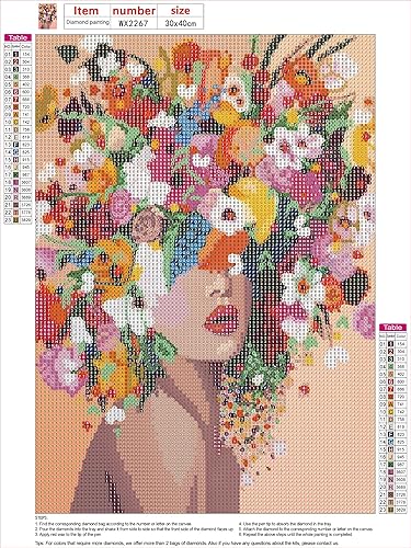 MXJSUA DIY Diamant Painting Kit, Fille Fleur 5D Dessin Art du Diamant Complet Kits, Diamond Art Kits Strass Point de Croix Painting pour Adultes Débutants Maison Décor 30X40cm