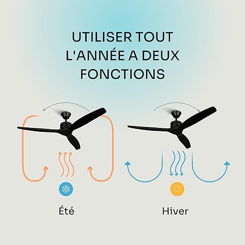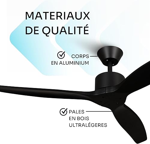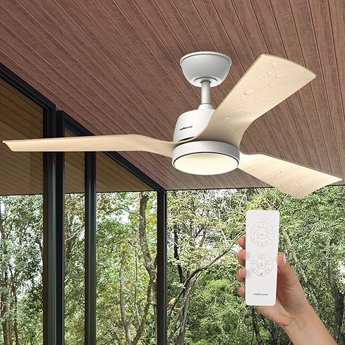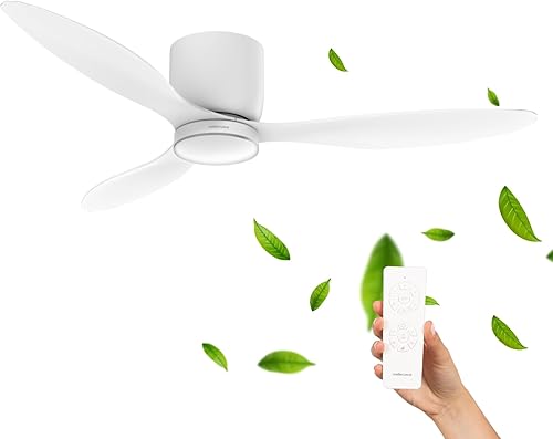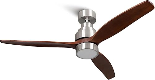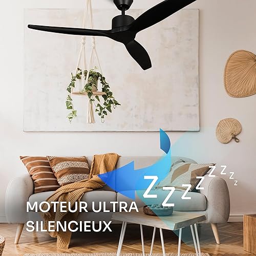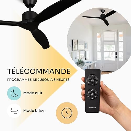 Mellerware - Ventilateur de plafond avec télécommande Brizy! Bright 45W | Lampe puissante | Ultra silencieux | 3 lames | Diamètre 132cm | 6 vitesses | Refroidissement + LED intégrée | Bois clair