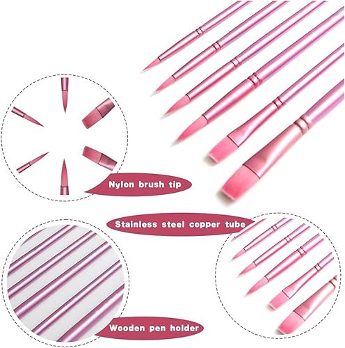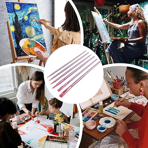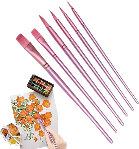 Paint Brushes Set, Artist Paint Brush Set of 6, Drawing Art Tools, Nylon Material, 6 Pieces Paintbrushes for Gouache, Ink, Notebook, Scrapbook, Rock and Greeting Card, 35g