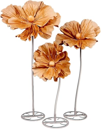 Fleurs Géantes pour la Décoration Matériau en Mousse EAV Fleurs Géantes avec Tiges et Supports, Grande Fleur Artificielle pour Toile de Fond(Orange)