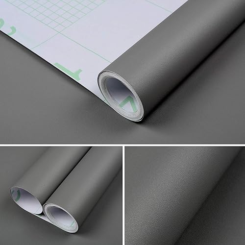 Cahomo 2 Rouleau 61 * 550cm Papier Peint Adhesif PVC, Épaissir Mat sans Bulles Papier Peint Auto-Adhésif pour Armoire de Cuisine Stickers Muraux Étanche Décor Table Placard Porte Gris Foncé