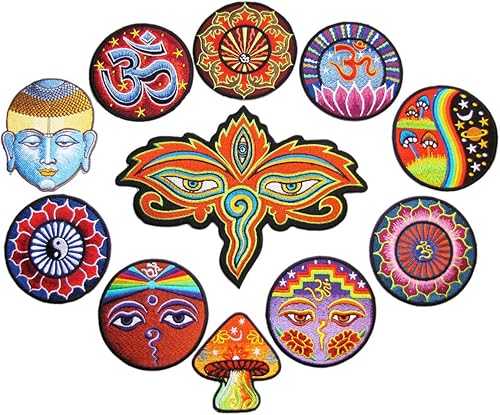 PANASIAM Patchs Vestimentaires, Motifs Géométriques Sacrés, par Pack de 11, de 4 à 18 cm, Thermocollant ou à Coudre