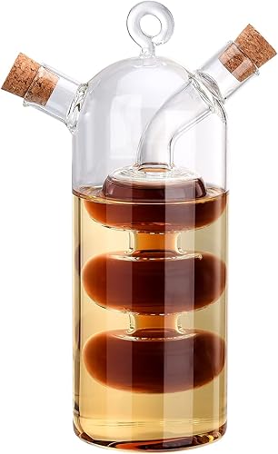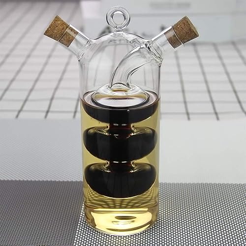 Pcscevcr Distributeur d'huile et de vinaigre 2 en 1 - En verre transparent - Avec bouchons en liège - Fournitures de cuisine (forme de virgule)