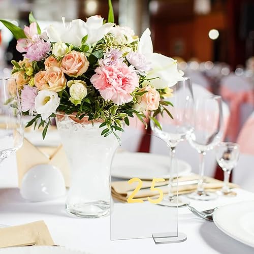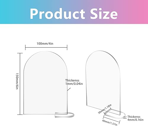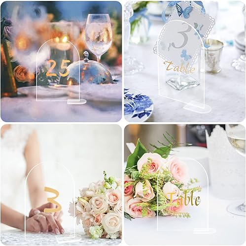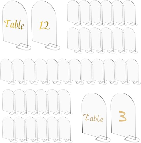 Lot de 20 panneaux en acrylique transparent avec support de 20 cartes vierges en acrylique arquées avec dessus rond pour noms d'invités, numéros de table pour décoration de fête de mariage, événement