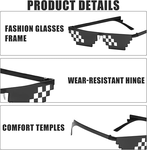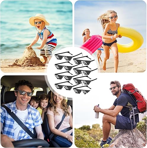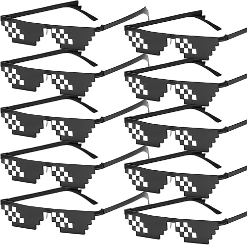 Thug Life Lot de 10 paires de lunettes de soleil Pixels pour fête Mosaïque 8 bits Pixel Mosaïque Lunettes MLG Party Lunettes amusantes pour carnaval, festivals de musique, fête, bar, fête