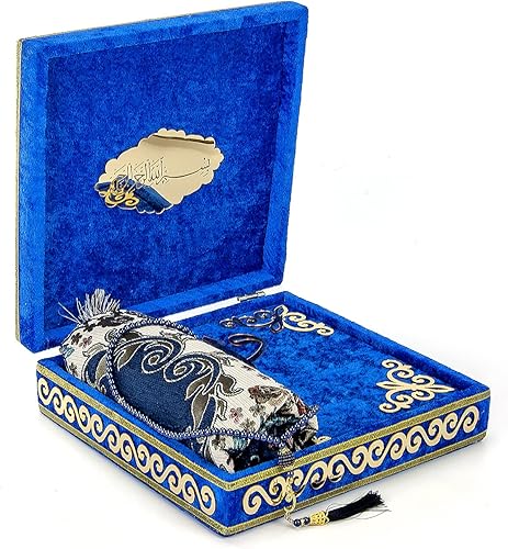 Boîte cadeau couverte en velours de prière islamique de luxe, de luxe 4 pièces avec élégant velours couvert coran et perles de prière