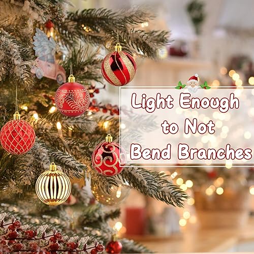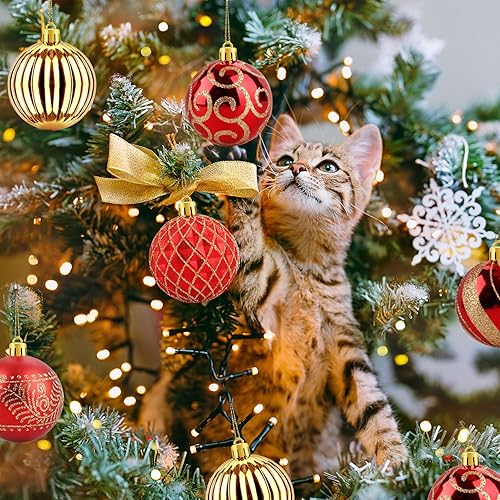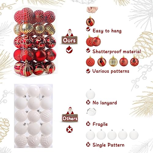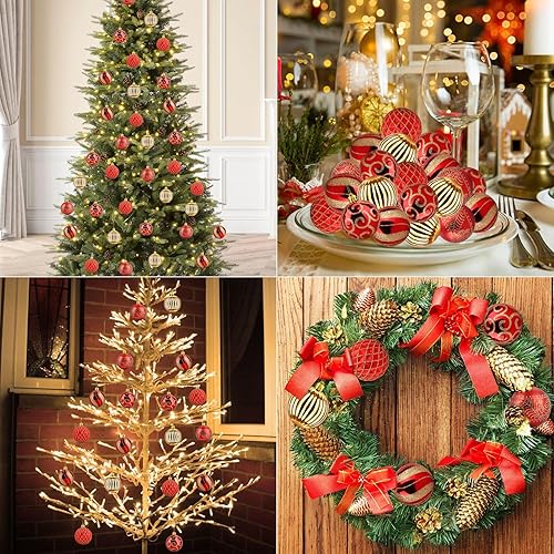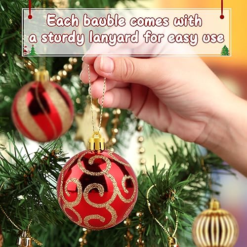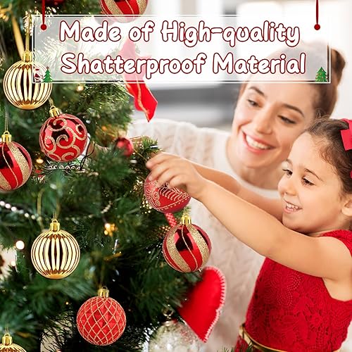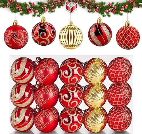 Dwelilin Boule de Noel Rouge et Dorée 6cm Decoration Noel Sapin 30pcs,Grosse Boules de Noel Sapin Plastique Cordon,Deco Noel Décorations Noel Interieur Maison Noël Sapin Couronne Guirlande Noel