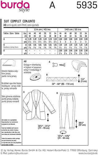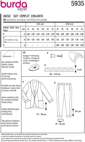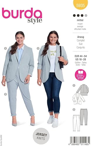 Burda style 5935 Patron de couture et veste de costume à coudre soi-même | femme, taille 38 à 58| Niveau de couture : moyen