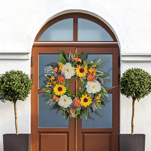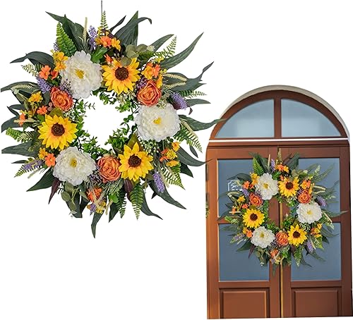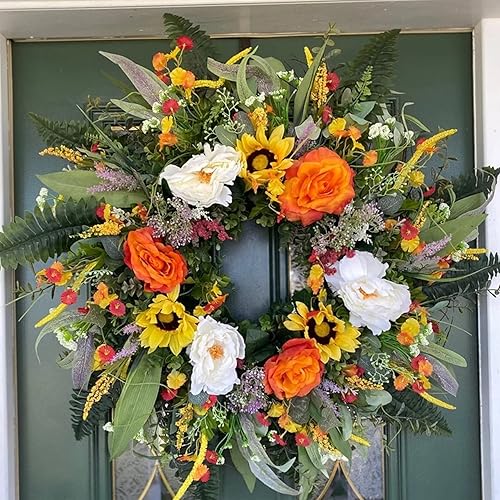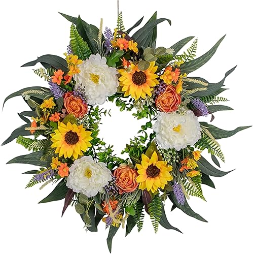 Couronne D'été Artificielle pour La Porte D'entrée Couronnes De Fleurs Eucalyptus Couronne De Porte D'été Guirlande De Porte Décorative pour Décoration Intérieure 40cm