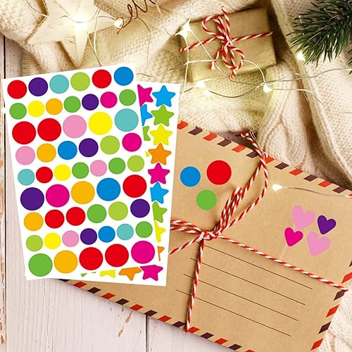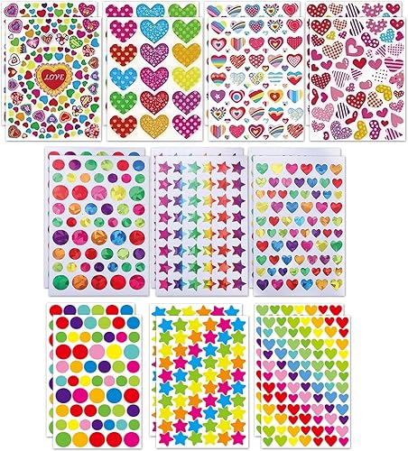 ZXCHOME 20 Feuilles Gommettes Autocollantes, Stickers Gommettes Enfants en Forme de Coeurs Étoiles Pois Autocollants Colorés pour Activités Manuelles Photo Cadeau Scrapbooking