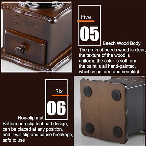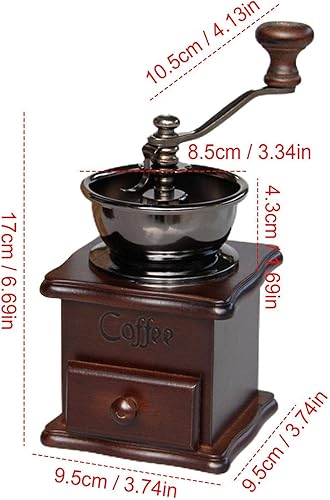 Moulin à café Vintage – Moulin à café Manuel en Bois, Petit Moulin à café en Fonte Antique avec mouture et tiroir