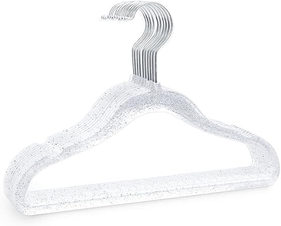 Tomotato 10 Pièces Cintres en Plastique, 40cm Cintres Transparents à Paillettes, Cintres Antidérapants pour Placard pour Pantalon Robe Adultes(Rose)
