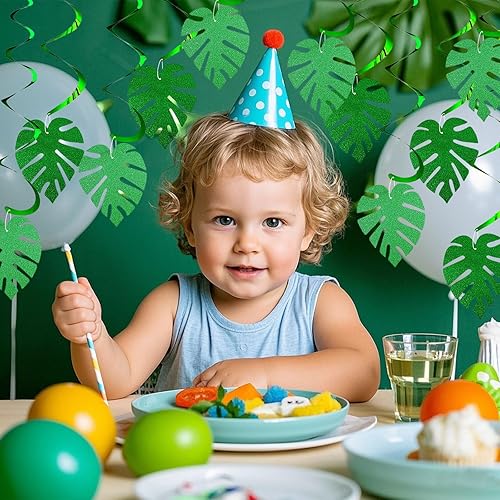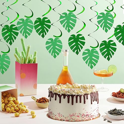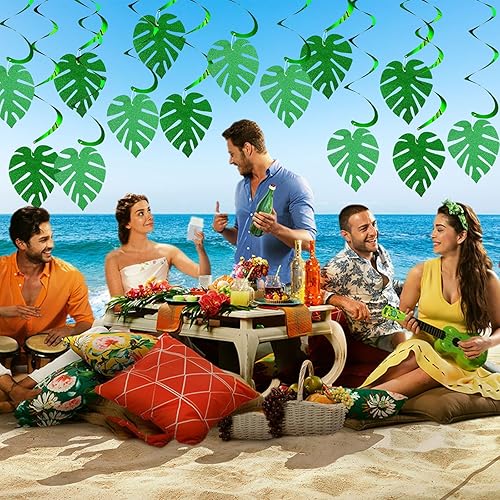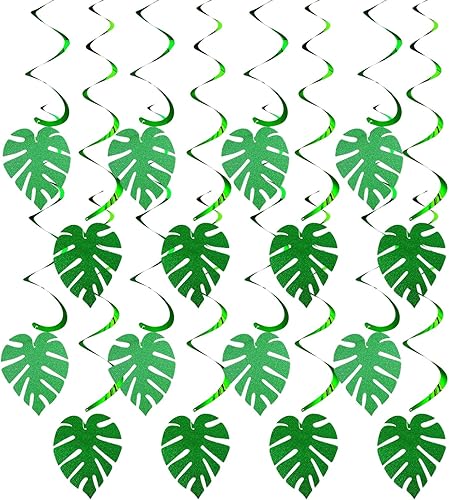 32 Pièces Feuille de Palmier Guirlande Tourbillon Suspendu, Tropical Spirale à Suspendre Decoration, Hawaïen Suspendus Tourbillons Suspendus, Suspension Spirale pour Fête Hawaïenne Tropicale