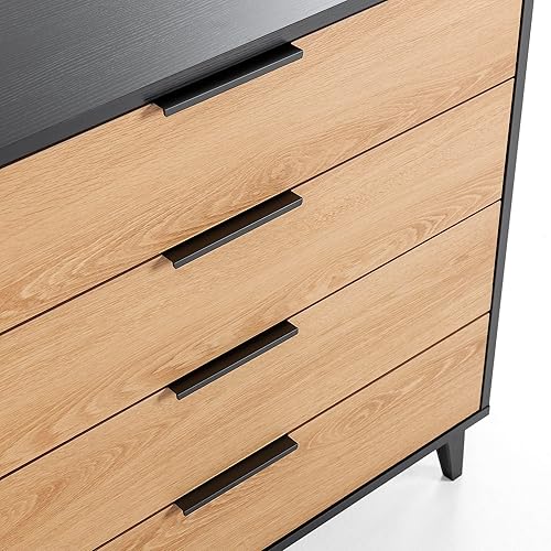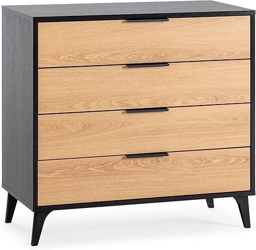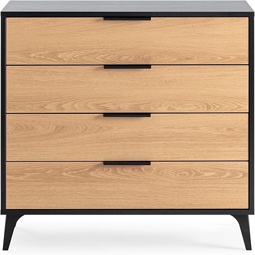 HOMN LIVING Commode de nuit Kalma 4 tiroirs Noir/bois, 80 cm (largeur) 40 cm (profondeur) 76 cm (hauteur)