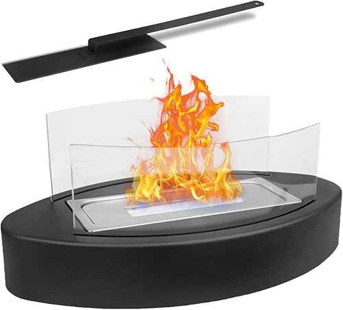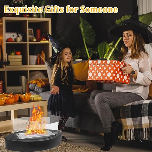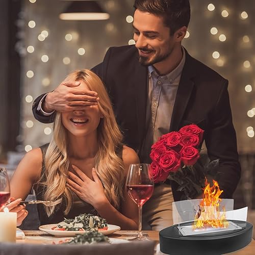 Cheminée au Bioéthanol,Feu de Table pour l'intérieur et l'extérieur,Petite Cheminée de Table Portable Intérieur,Cheminée de Table avec Flamme Réglable et Verre de Sécurité