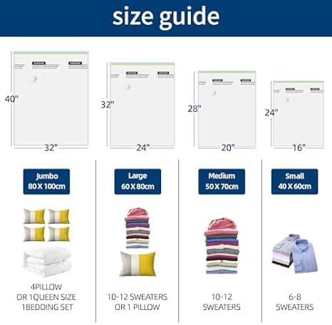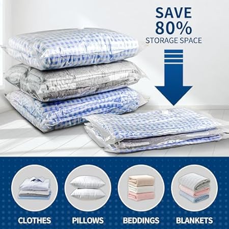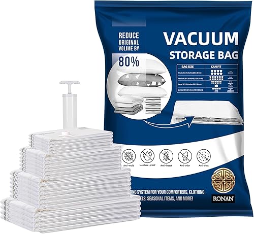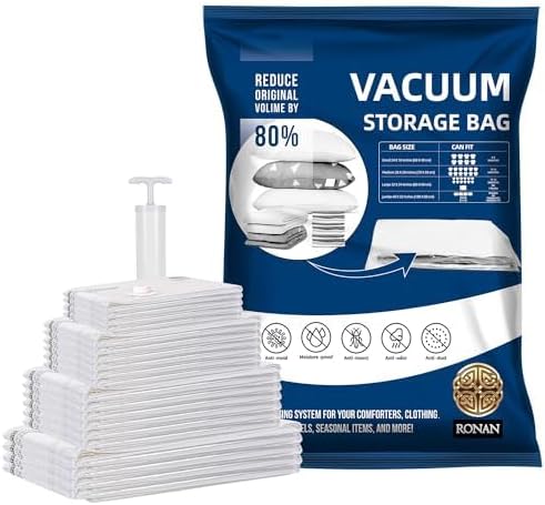 RONAN. Lot de 6 sacs de rangement sous vide pour vêtements 60 x 80 cm - Sacs vides pour vêtements - Économie d'espace - Sacs de rangement pour vêtements - Pompe à main