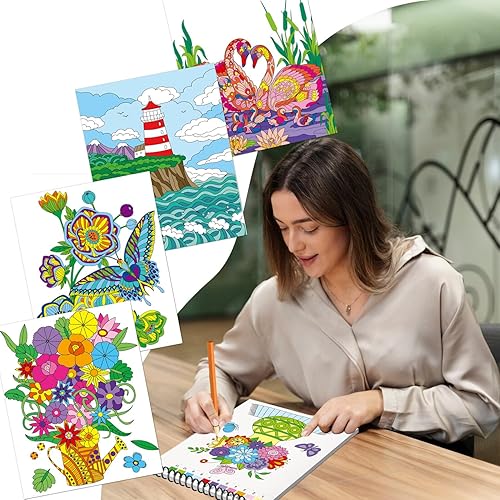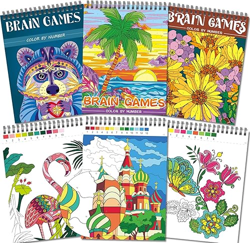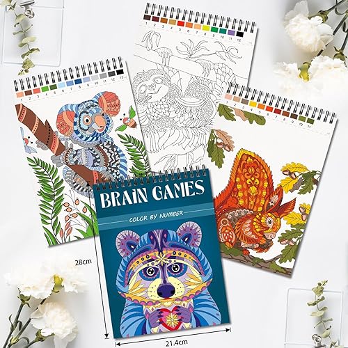 Kalysky Lot de 3 Livre de coloriage par numéro pour adultes, 3 Thèmes-animaux, paysage, fleurs, livres de coloriage pour adultes, Dessins numérotés anti-stress