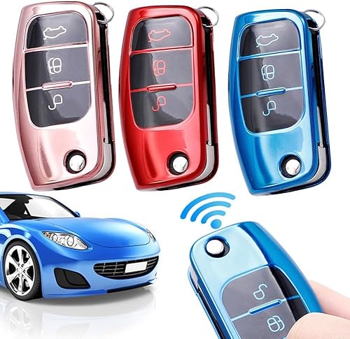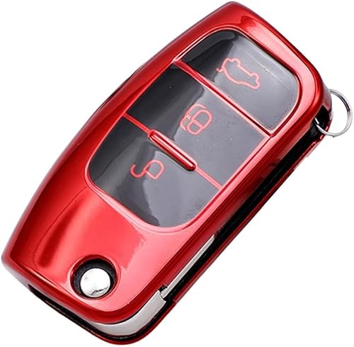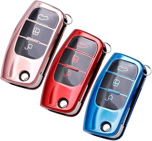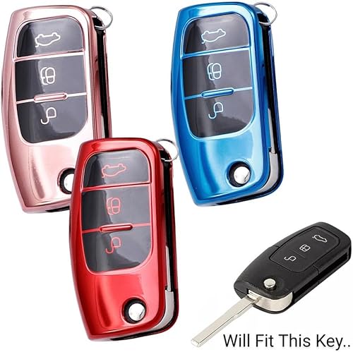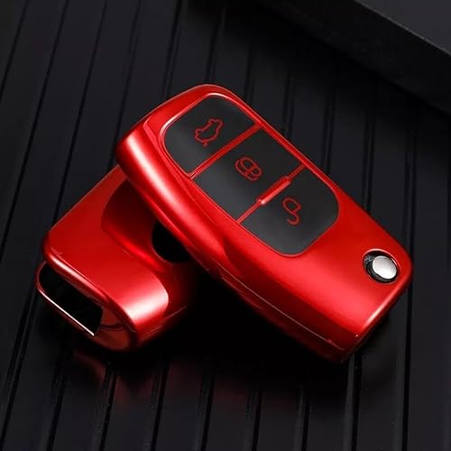 Coque de clé de voiture pour Ford, Fiesta, Focus, Mondeo, en TPU souple pour résister aux rayures et à l'eau (rouge)