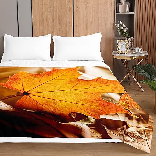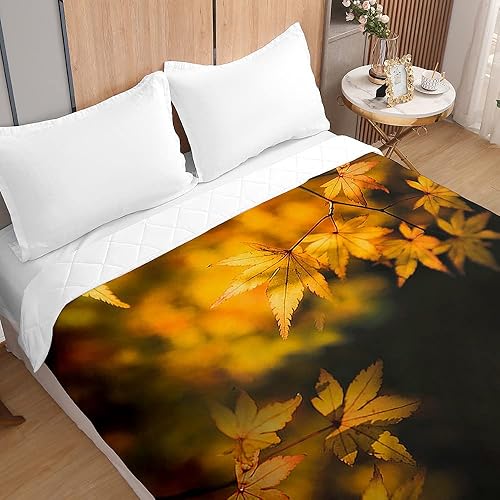 Chickwin Été Boutis Couvre Lit Matelassée 1/2 Personnes, Feuilles d'automne Parure de Lit Canapé Couvre-lit Couverture de lit Jeté de Lit Dessus de Lit Courtepointe (230x260cm,Rouge)
