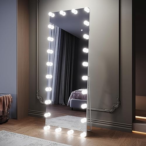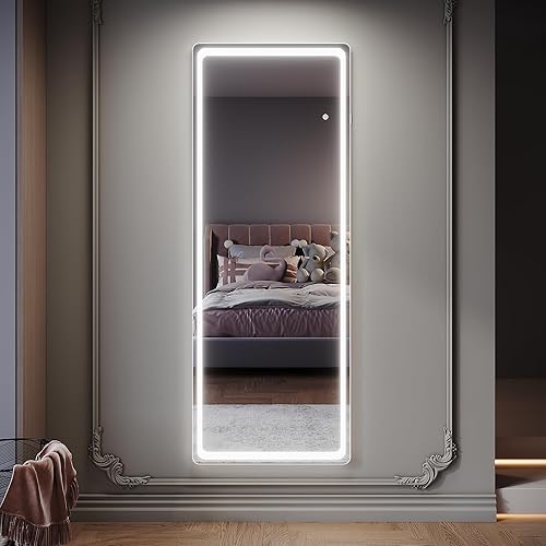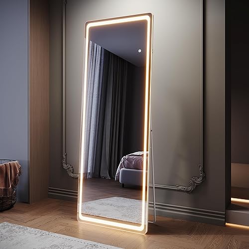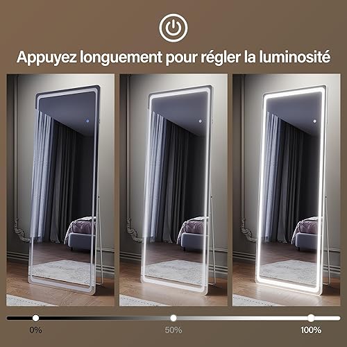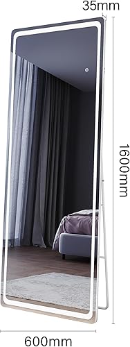 SIRHONA Miroir sur Pied LED 160x60cm, Miroir Pleine Longueur avec 3 Couleurs, Dimmable, Mémoire, Port USB, Montage Accrocher ou Placer, Antichute