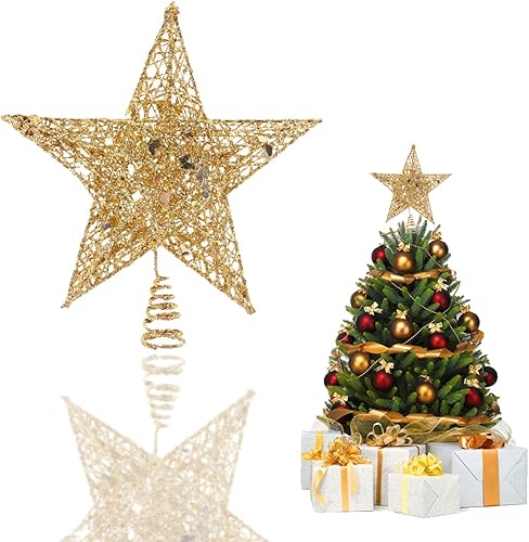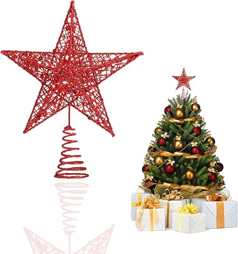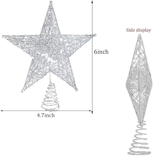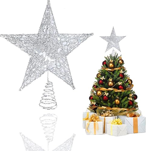 YEAP Étoile pour Sapin de Noël - Topper en Métal Scintillant - Star Treetop Creux - Décoration Pentagramme - Ornement pour Fête, Argent