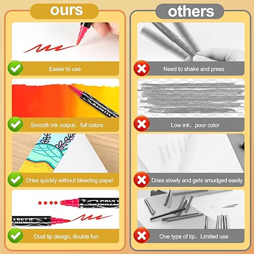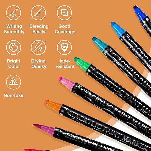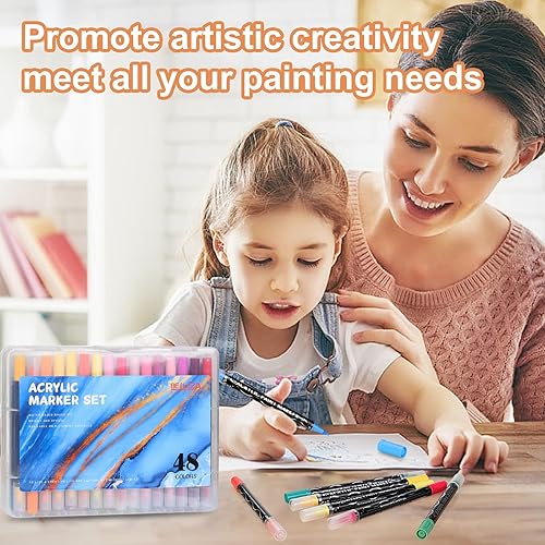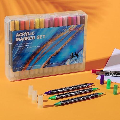 Belleza Suprema Lot de 48 marqueurs de peinture acrylique de qualité supérieure pour bois, toile, pierre, peinture sur roche, verre, surfaces en céramique, loisirs créatifs