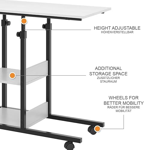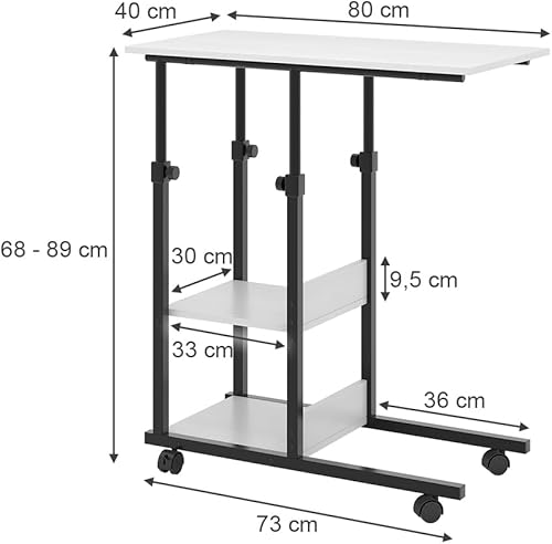Vicco Table de Salon Liam, Blanc, 89 x 40 cm avec roulettes