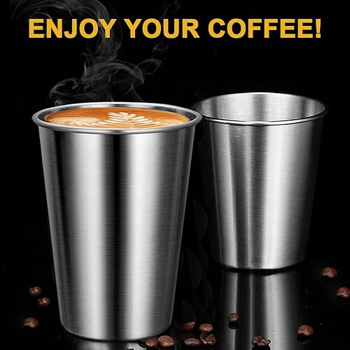 LELE LIFE 4pcs Tasses en Acier Inoxydable 304 de Qualité Supérieure, Tasses à Boire Empilables, Tasses Mugs en Métal Incassables Gobelets en Acier Inoxydable pour Enfants et Adultes, 350 ml, Argent