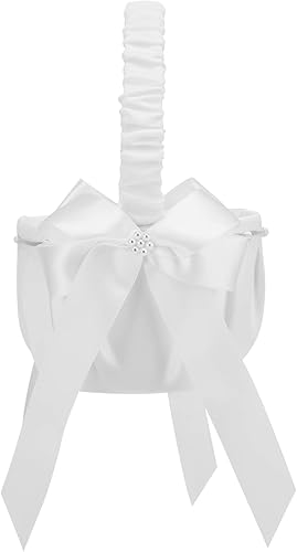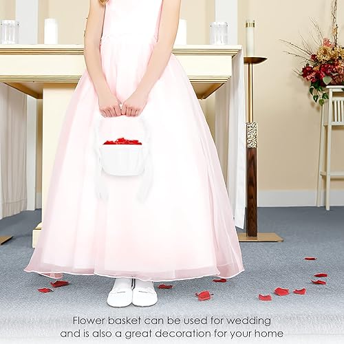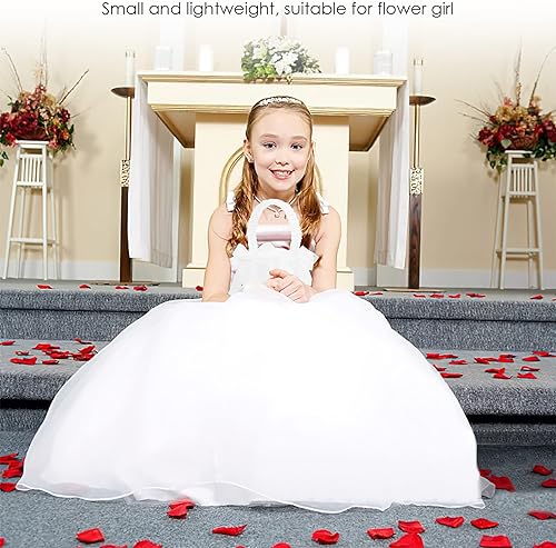 Panier Mariage de Fille de Fleur Ruspela Panier à fleurs en dentelle avec nœud pour mariage de style européen Ceremonie Fleurs pétale confettis a à Noce Perle petale