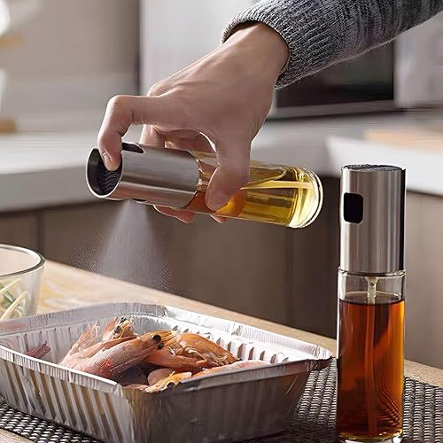 Retoo Pulvérisateur d'huile pour la cuisson - 100 m - En verre - Pour cuisine, huile, cuisine, huile d'olive, vinaigre pour salade, barbecue, pâtisserie, plastique - Transparent