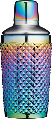 Barcraft Shaker à Cocktail en Verre Clouté, 300 ml (10.5 Fl Oz) - Finition Perle Arc-en-Ciel Irisée 8 X 8 X 17.5 cm Multicolore