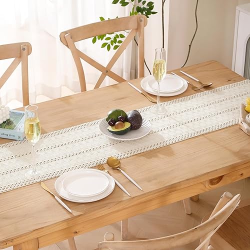 Chemin de Table en Lin de Coton Macramé Boho Petite Nappe Rouge Bordeaux Moderne Lavable Bohème Centre de Table Decoration Mariage Champetre pour Mariage Cuisine Salle à Manger 30 x 140 cm