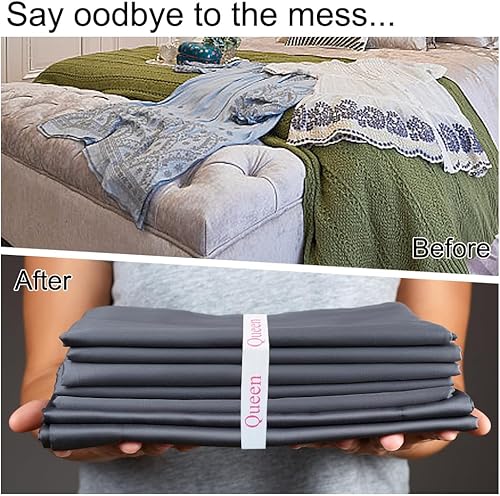 GORGECRAFT 8 Pièces Bandes Organisateur de Draps de Lit Étiquettes de Linge Bande de Literie Garde-Draps Organisation de Placard Mot Roi pour Roi Reine Twin Ensembles de Lit Pleine Grandeur, Noir