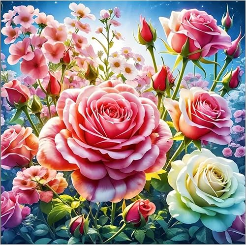 DOUKOYEE Diamond Painting Adulte,Rose colorée Fleurs Paysage Peinture 5D Diamant Kits, 5D Complet Kits de Broderie Diamant Adulte Pierres Rondes DIY Artisanale Diamant Murale Décoration Art Set (B)