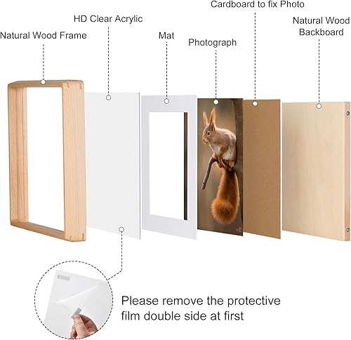 Kattepote 8x10 pouces Cadre photo 20x25 cm, à poser ou à fixer au mur, pour photo 20 x 25 cm maximum et avec passe-partout pour photo 15 x 20 cm, en hêtre naturel.