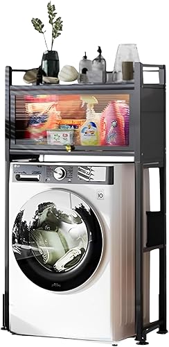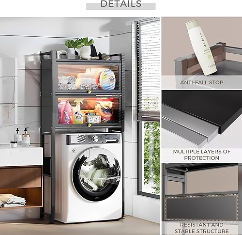 Étagère au-dessus de la Machine à laver avec Portes Pliantes | Support de Rangement Étanche | Étagère de Rangement Polyvalente | Économisez de l'espace avec 3 Niveaux | Pieds réglables en Hauteur