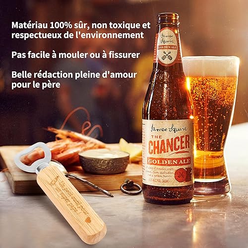 Hapculon Idee Cadeau Papa Décapsuleur, Décapsuleur en Bois Personnalisable, Décapsuleur en Bois Personnalisé avec Poignée en Bois avec Gravure pour Fête des Pères Noël Anniversaire