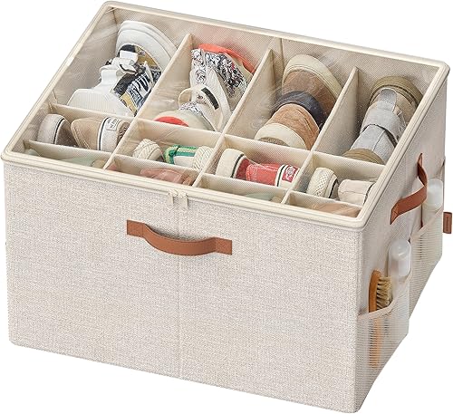 SONGMICS Organiseur de Chaussures, Boîte de Rangement pour Chaussures, pour 16 Paires, avec Poignées, Gain de Place, Couvercle Transparent, Modulable, pour Armoire, Gris Tourterelle LSP555G01
