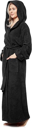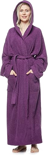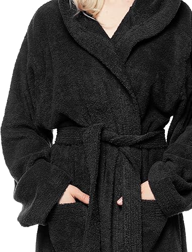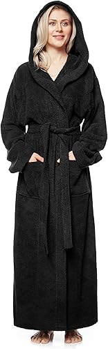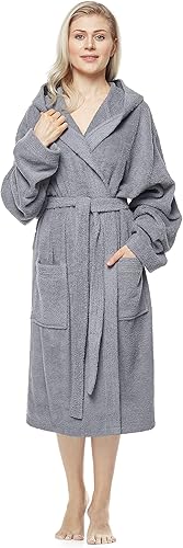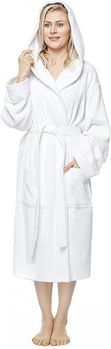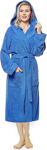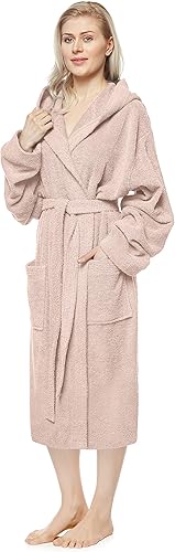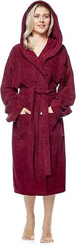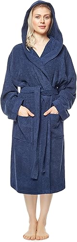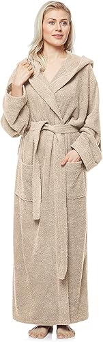 Arus Peignoir de bain pour femmes longueur mollet ou cheville, éponge 100% coton certifié OEKO-TEX avec capuche