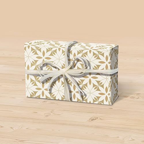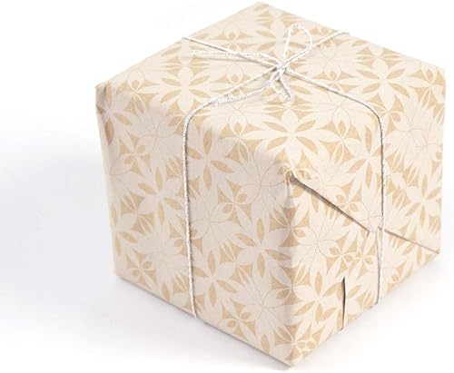 Clairefontaine 223830C - Un Rouleau De Papier Cadeau - Kraft Brut 70g 100% Recyclé - 5mx35cm (Spécial Petite Largeur) - Motif : Fleurs Blanches - Emballage Cadeau, Idéal Pour Les Petits Emballages