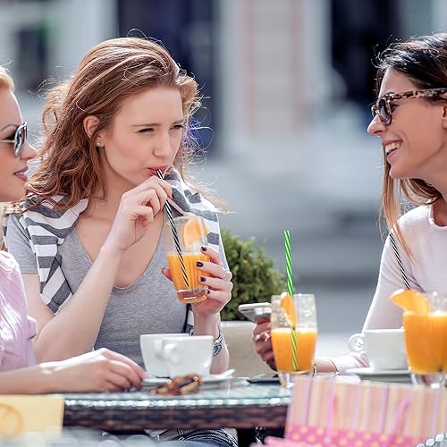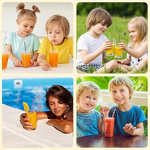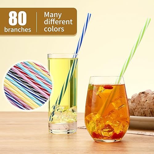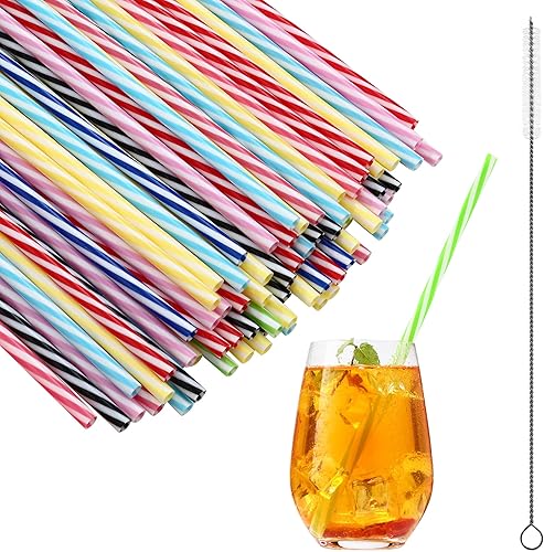 80 Pailles Réutilisables, Pailles Réutilisables avec brosse de nettoyage, pailles rayées colorées de 23 cm, adaptées aux Boissons, Bubble tea, Cocktails