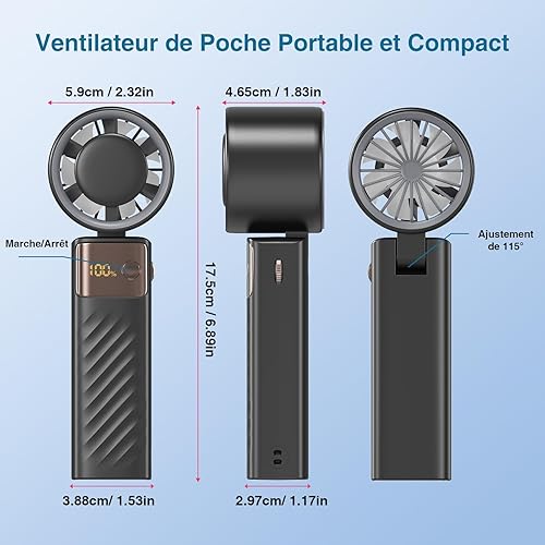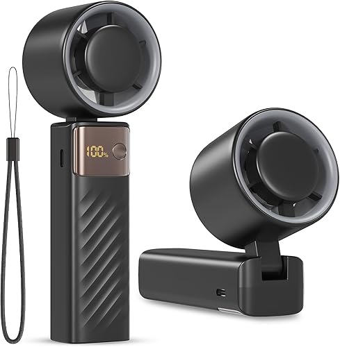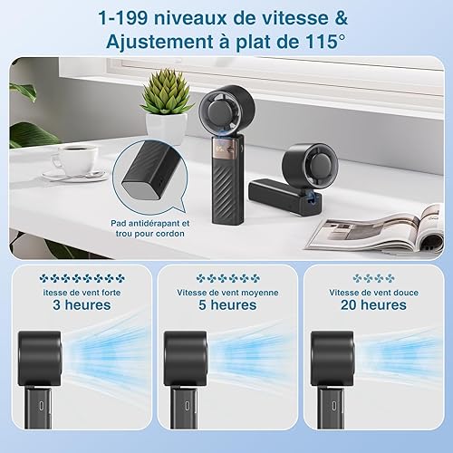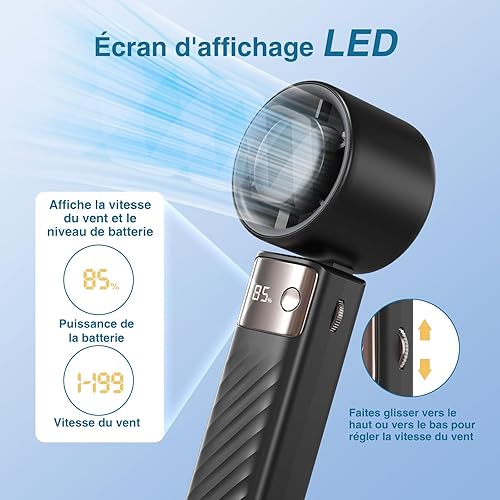 Ventilateur Portable à Main, Mini Ventilateurs USB Rechargeables, 199 Vitesses avec Écran LED, Ventilateur Pliable, Puissant et Silencieux Fan Maison, Bureau, Dortoir ou Voyages, Cadeau Fête des Pères